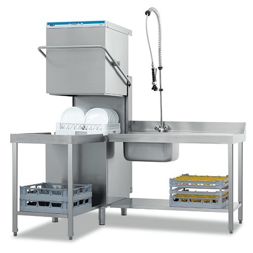 Büyük verimlilik için tasarlanmış çift cidar izolasyonlu giyotin tip bulaşık makinesi. Kapı açılış mesafe aralığı 41,5 cm, bu mesafe geniş ebatlı tabaklarınızın, mutfak ürünlerinizin ve tepsilerinizin yıkanmasına olanak sağlıyor. Çok yönlü dizaynı sayesinde ve birlikte kullanıldığı tezgahlar sayesinde kullanacağı alana kolaylıkla uygunluk sağlayacak, düz ve köşe yerleştirme yapılabilen bir ürün olma özelliğine sahip. Makinenin standart donanımı bütünlüğü ile karakterizedir aynı zamanda enerji tasarruflu bir üründür.